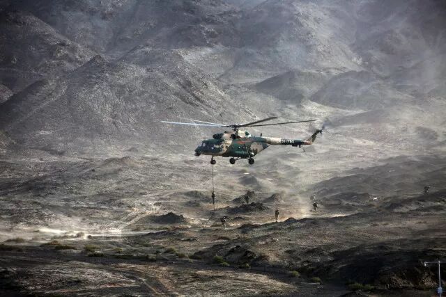5月23日,一场“空中突击群夺控重要目标”实兵实弹演练在新疆军区某训练基地打响。 演练中,某空突旅采取空地一体打击、精打立体夺要的战法,对“敌”实施联合火力打击。
