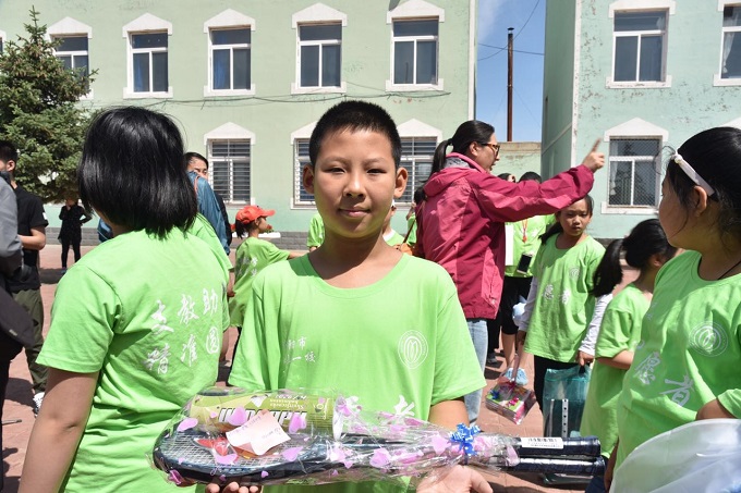 这次活动我们去了彰武县的阿尔乡镇。首先,我们去了阿尔乡九年制学校。当我走进学校,看到的是简陋的教学楼,教室的墙皮已经脱落,课桌高高低低,桌面上坑坑洼洼。他们的卫生间还是那种传统的旱厕,食堂里只摆放着几张破旧的桌子,吃饭时都无处可坐。看着眼前的一切,我觉得我的生活、学习环境那么优越。我想献上我一片小小的心意,符雪兵小伙伴在他的画中表达了他想拥有一副羽毛球拍的微小愿望,这次我给他带来了,并且还送给行政男小朋友文房四宝。看着他们的高兴脸庞,我的内心也充满了喜悦。他们,都是和我们生活在同一片蓝天下的同龄人,却受到了不同的待遇。相比起来,我们得到了更多,也有责任付出更多。我暗下决心,一定要好好学习,珍惜现在的一切。