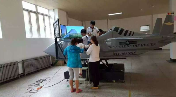 今天,这种让小孩学会开飞机的模拟飞行舱在山东省交通学院诞生了!