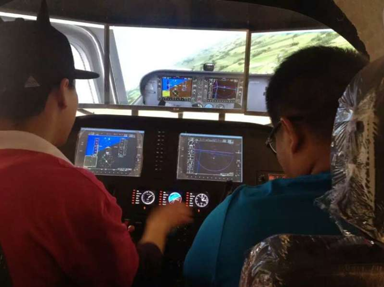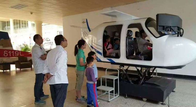 本次活动现场体验的飞行模拟舱,造价超过100万人民币,不单如此,模拟机舱的所有仪表高度模拟真飞机的设计,还有超宽的视频,模拟地图也使用了中国机场的地面景象,让大家能真真切切的体验到飞行的紧张与刺激。