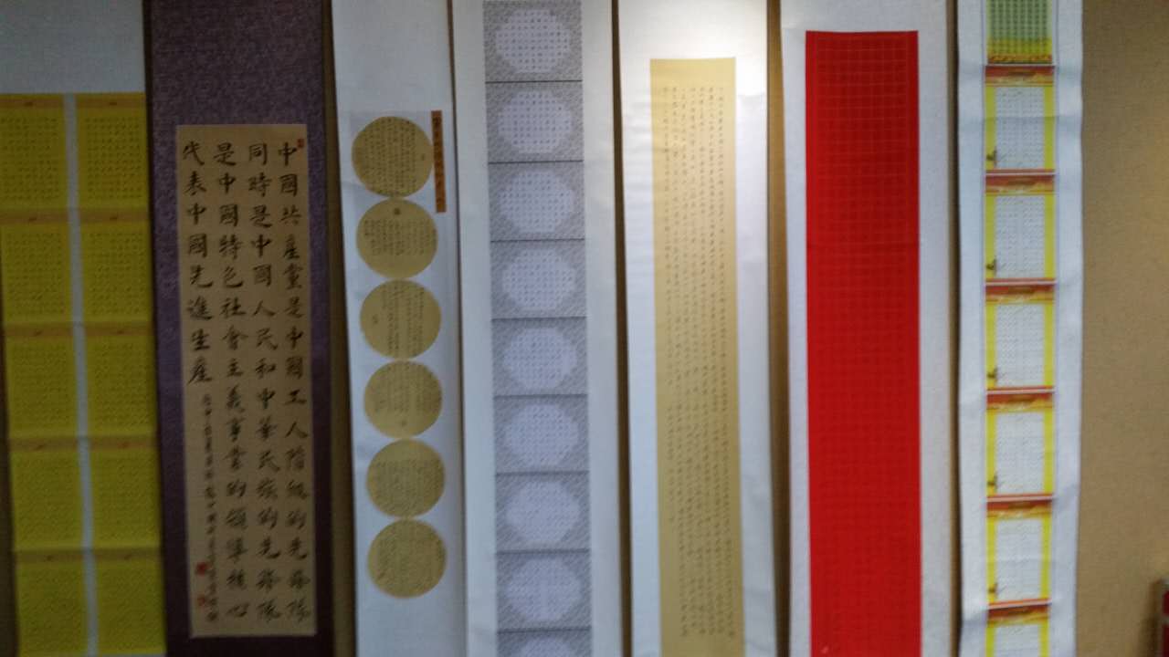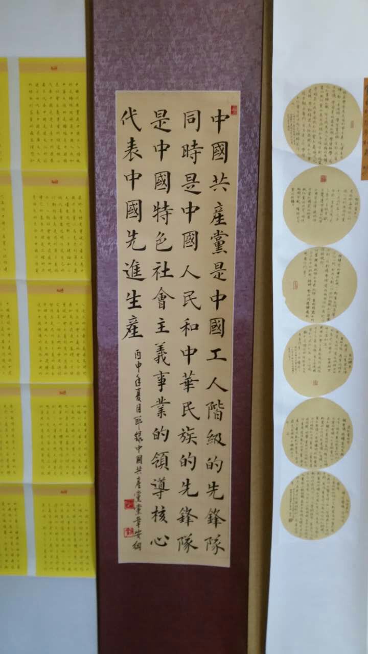 原来这批大作,是参加由辽宁省社科联主办、辽宁省国防教育基金会、辽宁省硬笔书法协会承办的"学党章、写党章、增強党的意识活动"的硬笔书法专业组作品。汇集沈阳古玩城是为了参加即将到来的评奖。