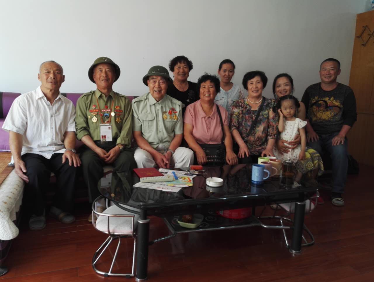 一路上大家谈的内容让车上的乘客也都感到吃惊。大客车的年青司机还刻意为我们提醒:“不用着急,待到站了我会告诉你们!”,他还提出:等到了站请我们同他合一个影。对他的好意我们表示了感谢,同时大家也答应了他的请求。车到站后,司机先下了车帮助大家接东西,并扶持我们,这时我看到了一位满头白发,身材比较高大的老人正在车旁笑着看着我们。张玉忱舅舅立刻向大家介绍:“这位就是当年我们连,就是张连昌的指导员。”又指着我们告诉他:“这些就是张连昌同志的亲属。”介绍大家见面一一握手后,马上同那位司机合了一张影,满足了这位好心人的要求。(只是很遗憾我们自己忘了也拍一张留念了。不过我们是真正地体会到了这位年青的公交车司机由衷的真诚、同情、理解和敬佩的心。)指导员孙青山同志的家住的是一楼。房间很大。院内、楼门及室内都很洁净。由于家人都在忙于自己的事,所以白天只有现已七十八岁的当年的老指导员孙舅舅一个人在家。我们这十一个人一来,这大屋子倒是显得热闹起来。加上我三岁小女儿的欢快劲也使室内充满了生机。孙舅舅抓紧时间给大家切了一个大西瓜,用来解渴和消暑。
