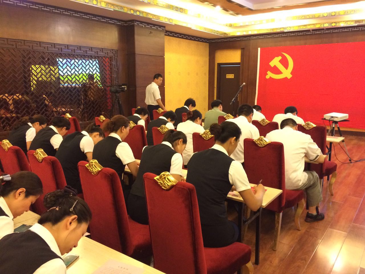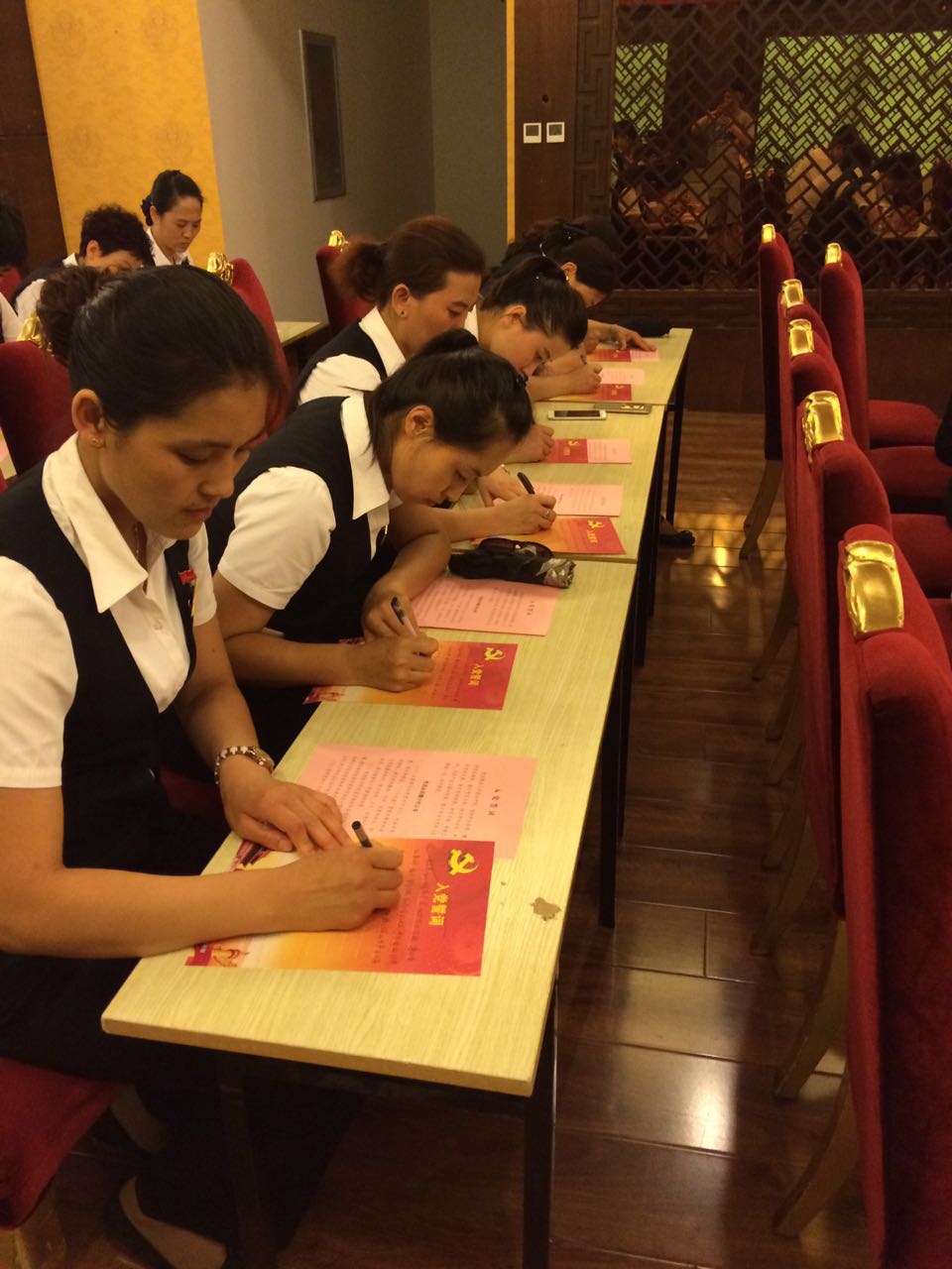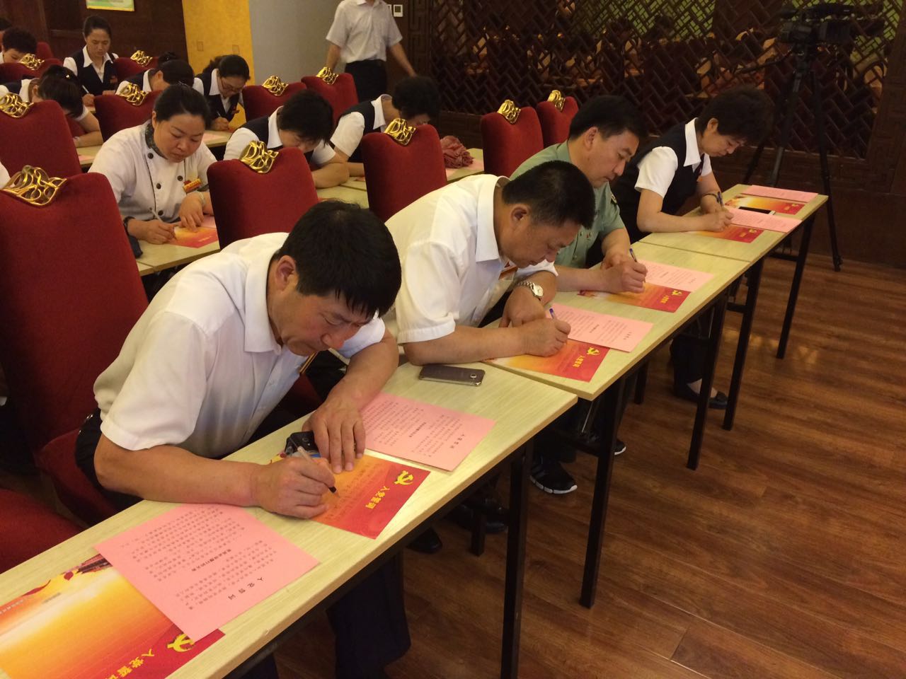 看得出来,一入古玩城,来宾们就被充满"党味"的氛围所感染。在王宝农总经理带领下,他们按辽宁省国防教育基金会的安排,先后进行了向党旗致敬,重温入党誓词、高唱"没有共产党就没有新中国",抄写入党誓词、观看国防教育影片《神圣使命》、参观《八一战旗红》军功章展和《复兴之路、壮丽画卷》党史展。短短不到一个小时,但给他们带来的主旋律的冲击和正能量的震憾,从其庄严、深思的眼神中可见一斑。