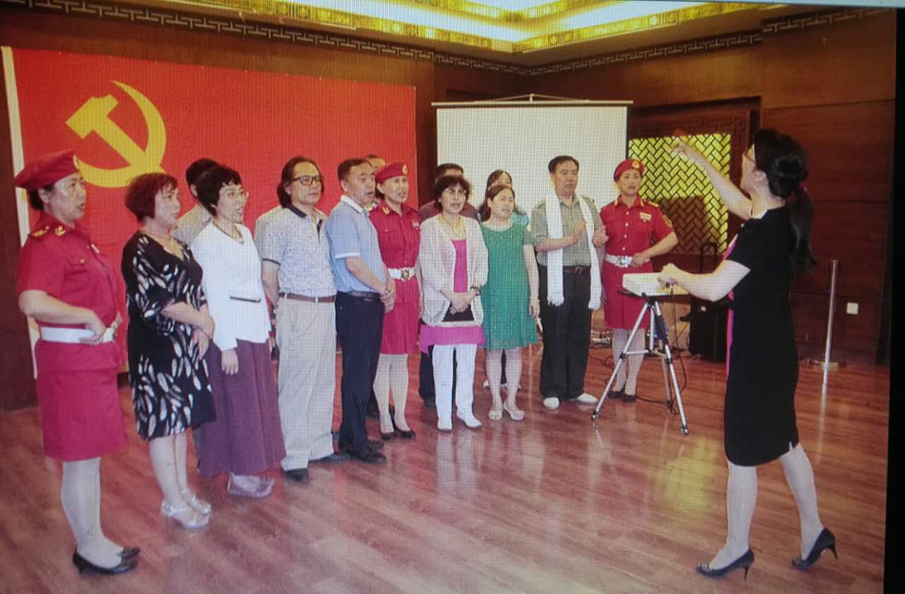 宣誓完毕,雄浑的音乐响起,著名主持人点点指挥,大家放声高唱《国际歌》、《没有共产党就没有新中国》,把对党和人民爱的心声化作高亢的歌声。