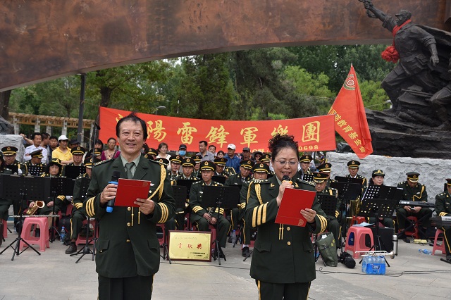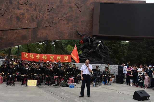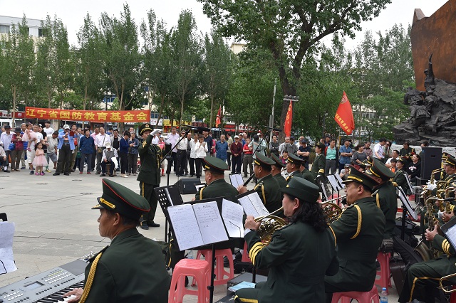 原来这是辽宁省国防教育基金会和沈阳市雷锋军乐团在这里举行《国防在我心中》大型广场系列巡演活动。