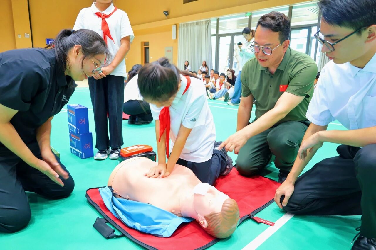 活动现场,专委会韩主任为师生带来一场实用的国防应急技能培训,详细讲解并演示了海姆立克急救法、人工呼吸、心肺复苏等实用应急技能,指导师生代表进行现场实操,有效增强了大家的自救互救能力与国防安全观念。