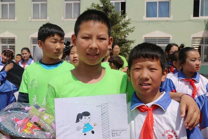 这次活动我们去了彰武县的阿尔乡镇。首先,我们去了阿尔乡九年制学校。当我走进学校,看到的是简陋的教学楼,教室的墙皮已经脱落,课桌高高低低,桌面上坑坑洼洼。他们的卫生间还是那种传统的旱厕,食堂里只摆放着几张破旧的桌子,吃饭时都无处可坐。看着眼前的一切,我觉得我的生活、学习环境那么优越。我想献上我一片小小的心意,符雪兵小伙伴在他的画中表达了他想拥有一副羽毛球拍的微小愿望,这次我给他带来了,并且还送给行政男小朋友文房四宝。看着他们的高兴脸庞,我的内心也充满了喜悦。他们,都是和我们生活在同一片蓝天下的同龄人,却受到了不同的待遇。相比起来,我们得到了更多,也有责任付出更多。我暗下决心,一定要好好学习,珍惜现在的一切。