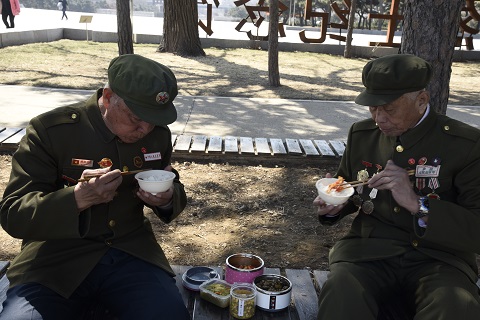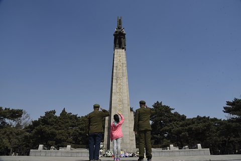 4月2日,抗美援朝烈士陵园祭拜烈士的人们络绎不绝。时值中午,极为感人的一幕出现在大家面前。