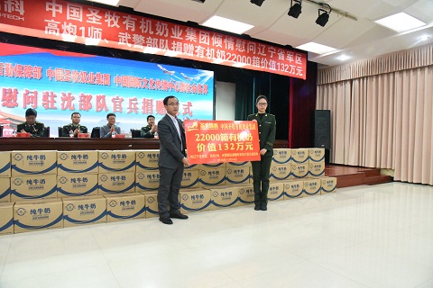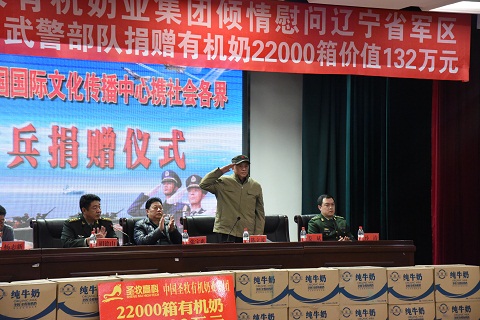 11月14曰,我会应邀参加由圣牧有机奶业集团向辽宁省军区、高炮一师、武警部队捐赠牛奶仪式。圣牧集团共捐赠2.2万箱牛奶,共计价值132万元。 李淑芳理事长、高建明秘书长和部分同志参加了捐赠仪式。