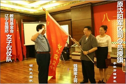 共和国上将向辽宁省国防教育基金会仪仗艺术团授旗
