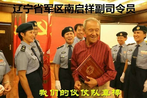 两位将军与仪仗队代表一一亲切握手 、合影 、签名赠书。 共和国上将亲自授旗,必将极大鼓舞全体队员,并将以此为动力,努力打造一支高水平的仪仗队伍,为辽宁全民国防教育事业做出更大贡献。