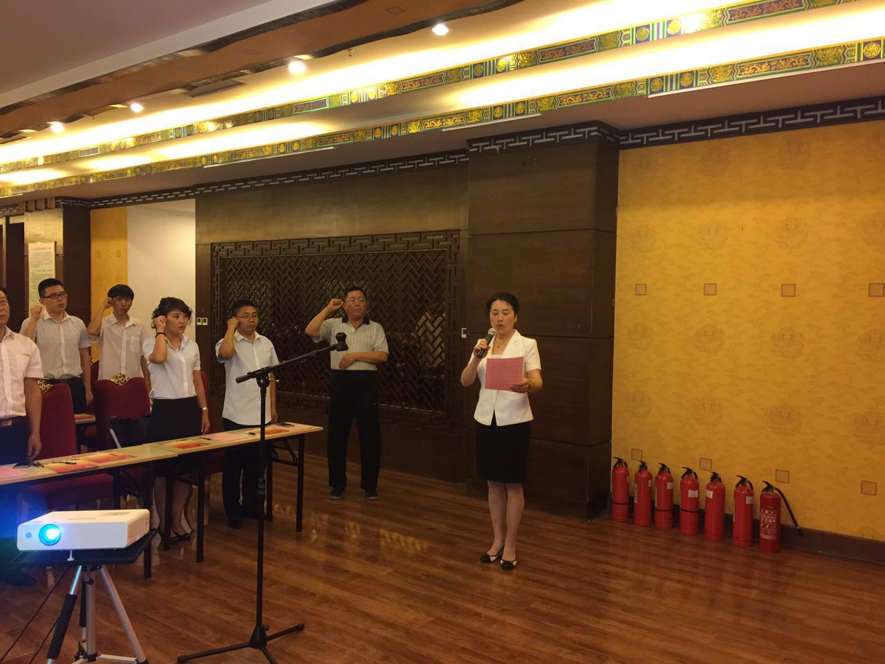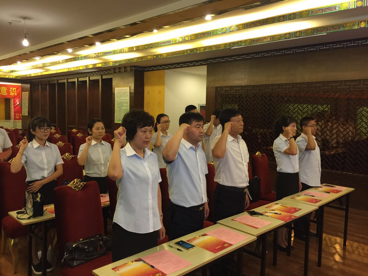 6月28日,为了纪念中国共产党九十五年华诞,于洪区政府服务中心主任和书记率领他们年青的团队,来到辽宁省      国防教育基金会位于沈阳古玩城的红色传承基地,举行了一系列党庆活动。他们是第二十七批前来参加活动的单位。      年青的公务员们,在用先烈鲜血染成的鲜红的党旗下,庄严地举起右手,大声地重温入党誓词,认真地抄写入党誓词,实实在在地增强了学习、贯彻、执行党章的自觉性。相信他们定会内化于心,外化于形,把党章做为人生的座右铭,去指导今后的做人作事。      中心刘主任做了重要讲话,对我会工作给予高度评价。并表示要为全民国防教育事业贡献力量。