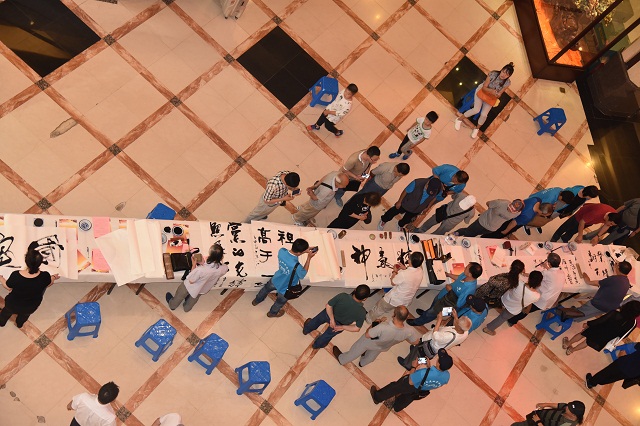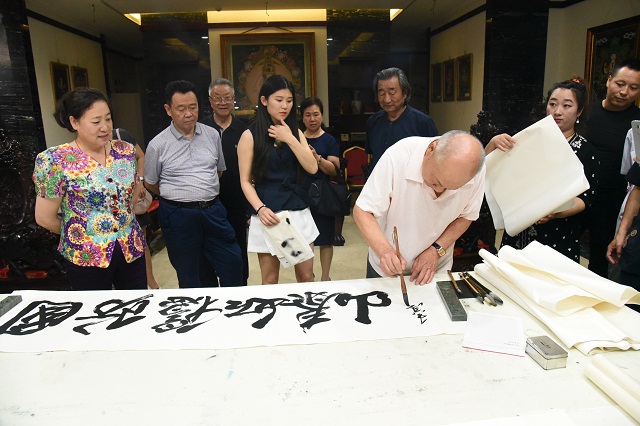 随后,书画创意笔会开始,艺术家任意挥毫泼墨,在神圣的党旗下完成了他们的神来之笔。为活动捐赠墨宝数十份。