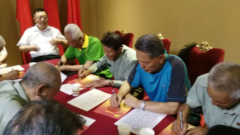 尔后到基金会办公室抄录了入党誓词。老同志们不顾年老昏花,严肃认真、一笔一划、一絲不苛地完成了神圣的作业。 这是目前开展此项活动以来,最老的敬录党章的团队。 这些老英雄在战争年代,忠于革命,忠于党,抛头卢,酒热血,令敌人闻风丧胆,为祖国羸得和平安宁,为党和人民立下赫赫战功!在和平年代,仍然念念不忘传承,念念不忘责任。凡是基金会有事,有请必到,并全力以赴完成。让我们领略了老英雄的独特风彩。