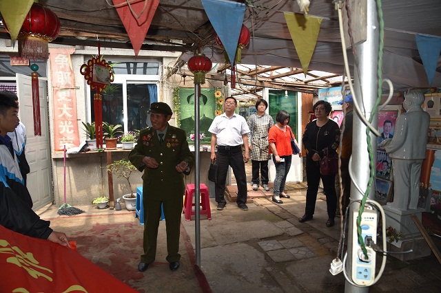 孙老与老伴居住在非常狭小的空间里。他每月生活费仅千元,靠省吃俭用和捡破烂积攒的六万元钱,在原为院子的地方搭建了工蓬,在里面办了红色教育传承基地。其中有我军战将风彩、抗美援朝战爭和看起来很老旧,但意义非凡的历史老照片。她默默地,纯朴地问人们述说着不应忘记的历史。