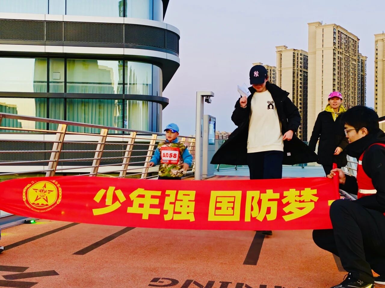 本次活动在场景设置与环节设计上别出心裁,结合沈阳环球港动感城全球首个悬空光影智能跑道作为比赛终点。参与家庭从动感城正门广场出发,经地面绕场奔跑后登临相当于11层楼高的屋顶,最终完成空中跑道环节。在奔跑过程中,家长与孩子相互鼓励、彼此扶持,用实际行动诠释了少年强则国强的精神,也让国防教育的意义在亲子协作中愈发深刻。