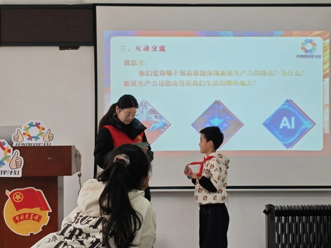 12月13日,星途成长护航之科技星火,追寻红色印记主题活动率先拉开帷幕,科技启蒙与红色教育的碰撞,让青少年们收获满满。思想领航课上,助讲老师以生动易懂的语言、趣味十足的互动问答,将抽象的“新质生产力”概念转化为可触摸、可理解的知识,从核心内涵到对国家发展的重要意义,一步步引导孩子们感受科技的力量,点燃探索未知的好奇心。